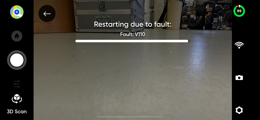 Either the V66 or V110 error normally occurs when the drone is powered on and connected to the controller and about to take off. The fault code can occur in either the “Skills” or “3D scan” mode Solution Steps